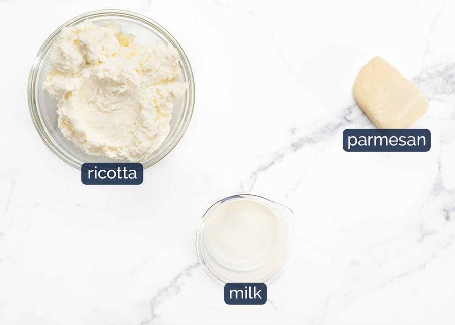 Just ricotta, milk and parmesan for a savoury flavour boost (though I would absolutely make this without).