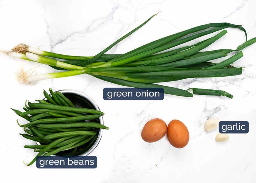 I used green onion and green beans because I was deliberately going for a green-add-ins fried rice in this recipe. Just to do something different from the typical kaleidoscope of colours you see in fried rice (carrots, corn, peas!). So feel free to substitute the green beans for other vegetables, and the green onion for a regular onion.