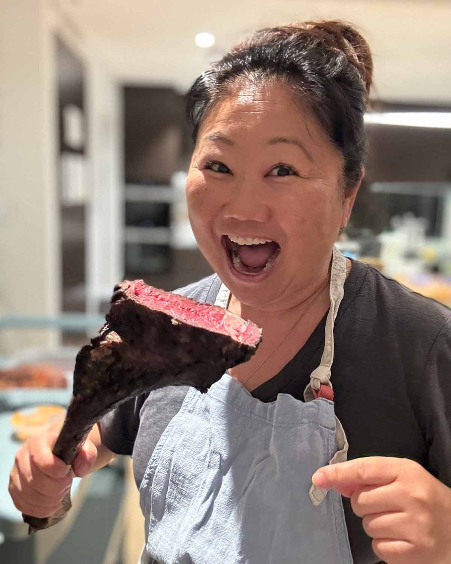 But no one can deny the wow factor! People ooh and aah while it cooks (unlike chicken breast 😅), then swoon at first bite. Tomahawk isn’t all show! Rib-eye is steak royalty – juicy, with just the right about of fat marbling, packed with beefy flavour.