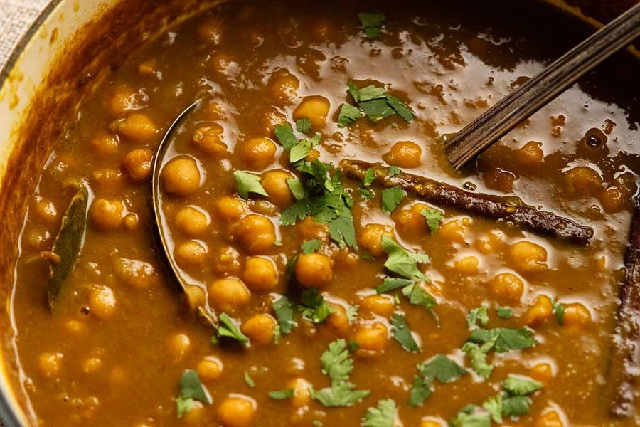 You’ll love how the sauce is thickened naturally using dried lentils cooked until they break down, and the neat trick to make the chickpeas beautifully creamy with just a pinch of baking soda. Two tricks I learnt from this Parkistani Lahori Chanay recipe from Sugar Spice & More on which this recipe is based. Though, the spicing ratios I created with reference to the chickpea curry in Parwana, a wonderful Afghan cookbook by Durkhanai Ayubi, and many “debates” with JB (see FAQ below for tales!).