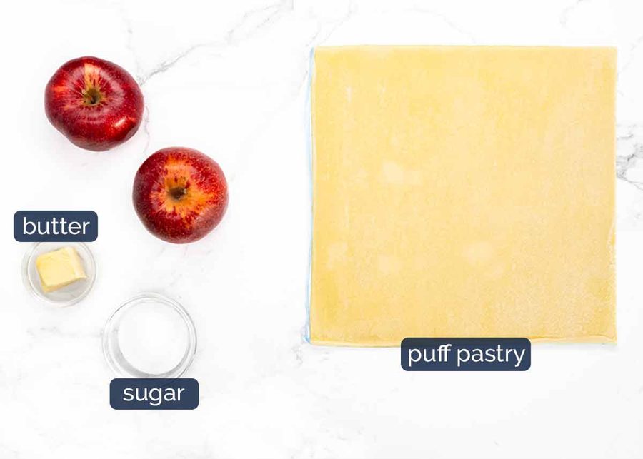 Sugar – For the underside of the puff pastry, which makes it extra crisp, as well as sprinkling on the apple and crust. You only need 5 teaspoons!