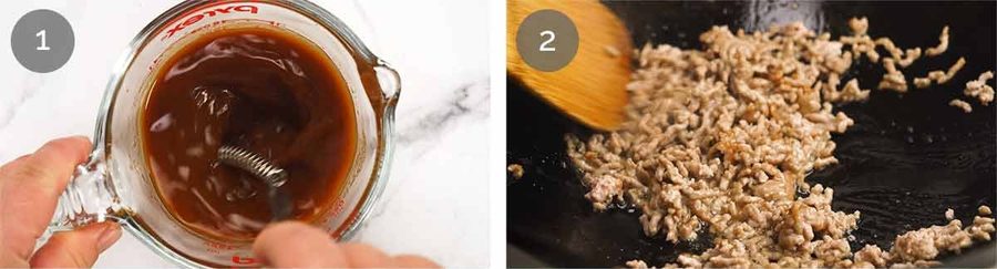 Mix sauce – Put the cornflour/cornstarch into a jug with the light soy sauce first and mix until lump free. Then add the remaining sauce ingredients and mix to combine. This order matters – cornflour mixes in faster in a small amount of liquid, avoiding lumps.