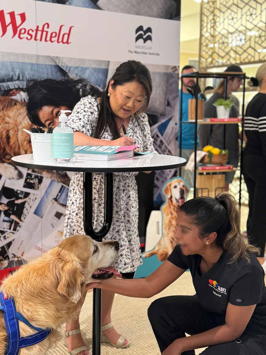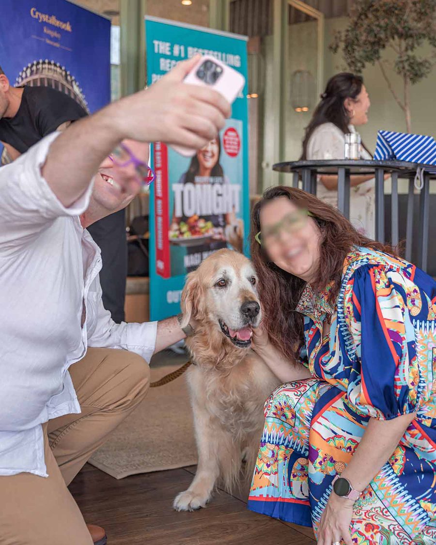 These days, meeting readers is something that we try to make a regular thing – because both my team and I enjoy it so much!! And of course, for Sydney events, Dozer is the biggest drawcard. Here he is, stealing all the attention at two of the reader events we held last year – a dinner at Boronia Kitchen (my local!):